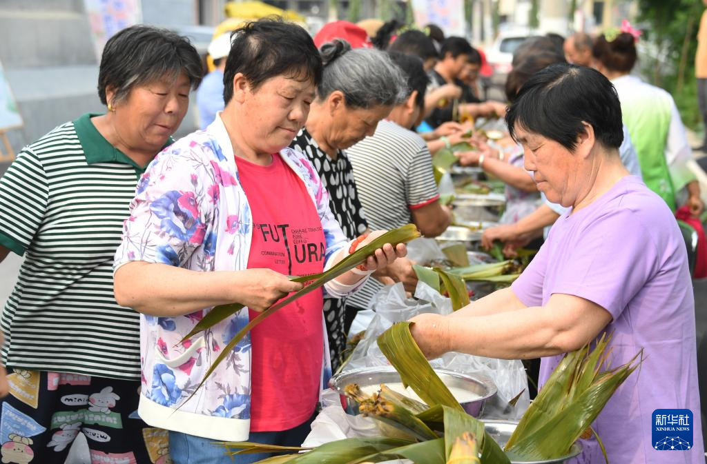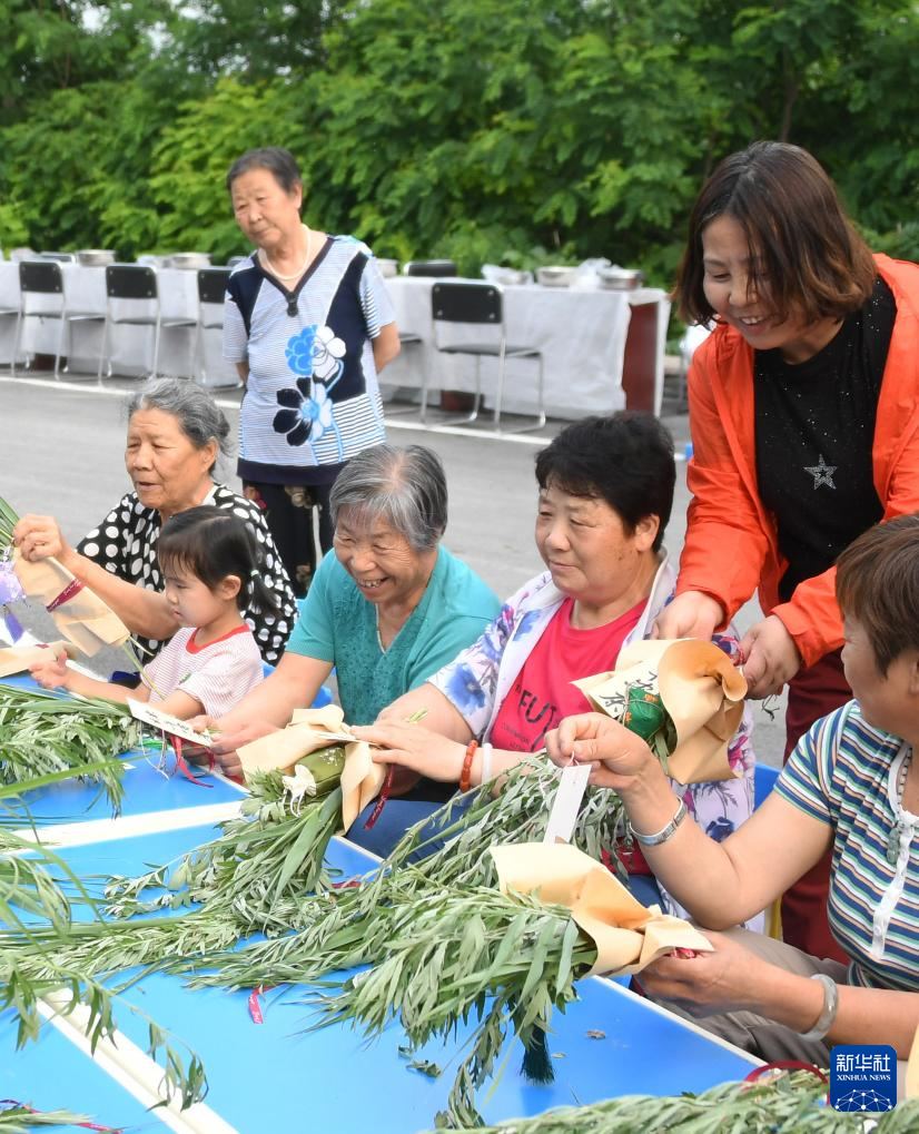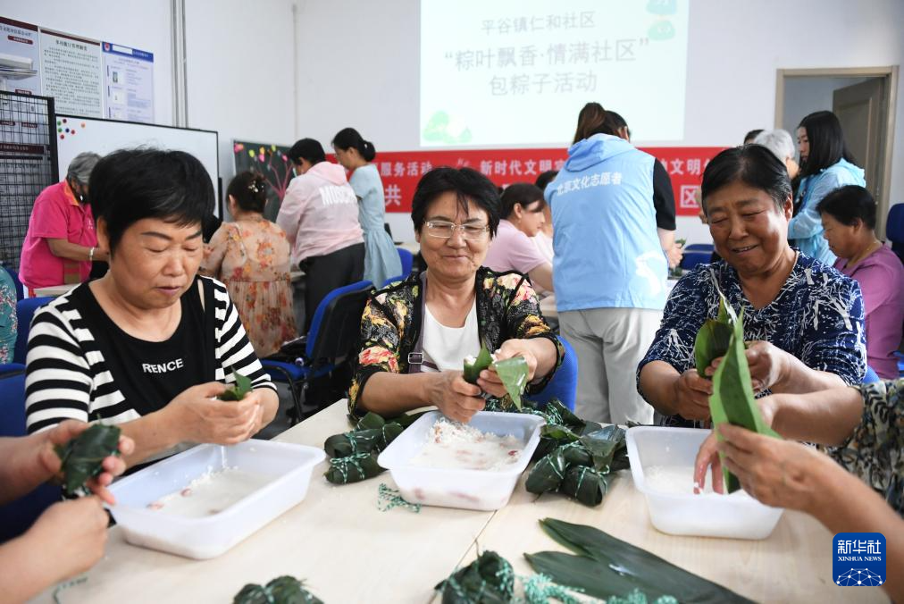 端午临近,北京市平谷区平谷镇举办包粽子、制作艾草花束等活动,迎接传统节日。