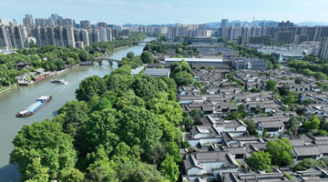 这是老师和孩子们用废旧报纸及包装纸制作的创意纸艺作品(6月13日摄)。
