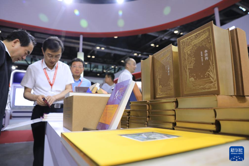 6月19日,读者在第三十届北京图博会“中国作家馆”翻阅图书。