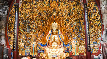 7月2日,“峨眉派女子功夫团”在大庙飞来殿合影。新华社记者 杨进 摄