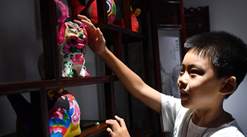 7月18日,来自青海的民间艺术家在活动上展示手工艺品。