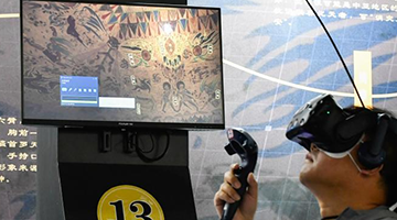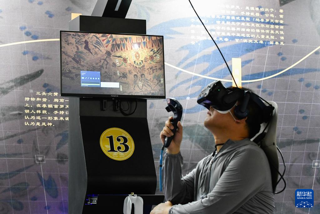 7月22日,游客借助VR设备沉浸式游览莫高窟第285窟虚拟场景。
