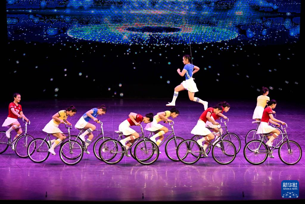9月22日,演员在河北省石家庄市长安区天缘剧场表演杂技魔术剧《恰同学少年》。