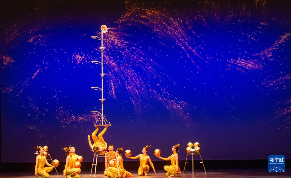 11月22日,在希腊雅典举行的第二届中希国际戏剧节上,广州杂技团演员表演杂技《球技-金色畅想》。