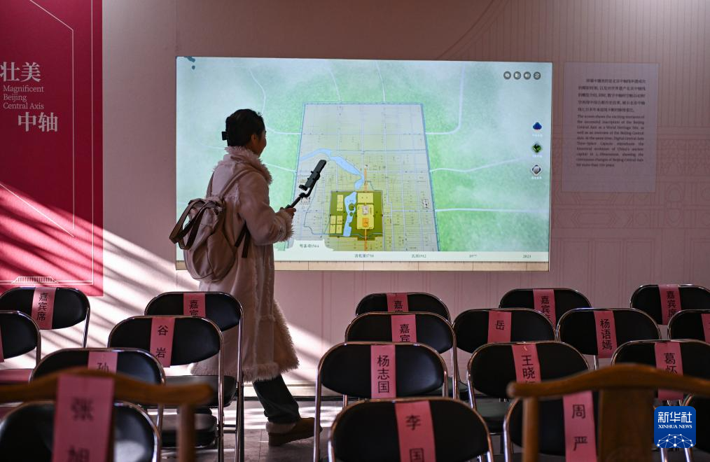 12月21日拍摄的庆成宫一进院内的“北京中轴线申遗保护工作成果展”。