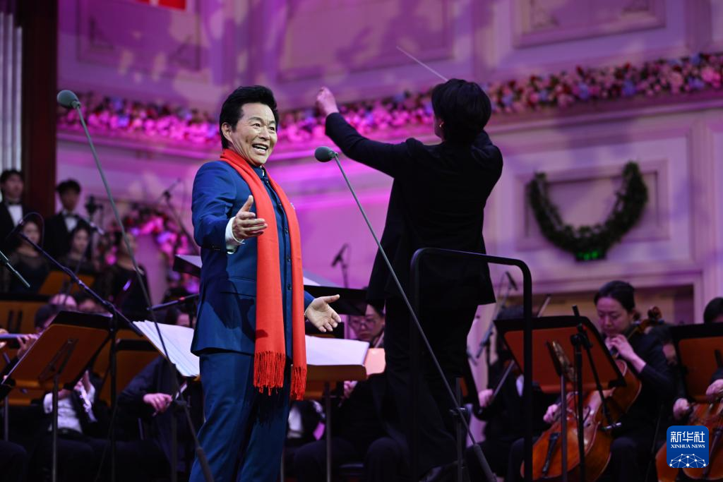 1月2日,男高音歌唱家王宏伟在音乐会上独唱《红星照我去战斗》。