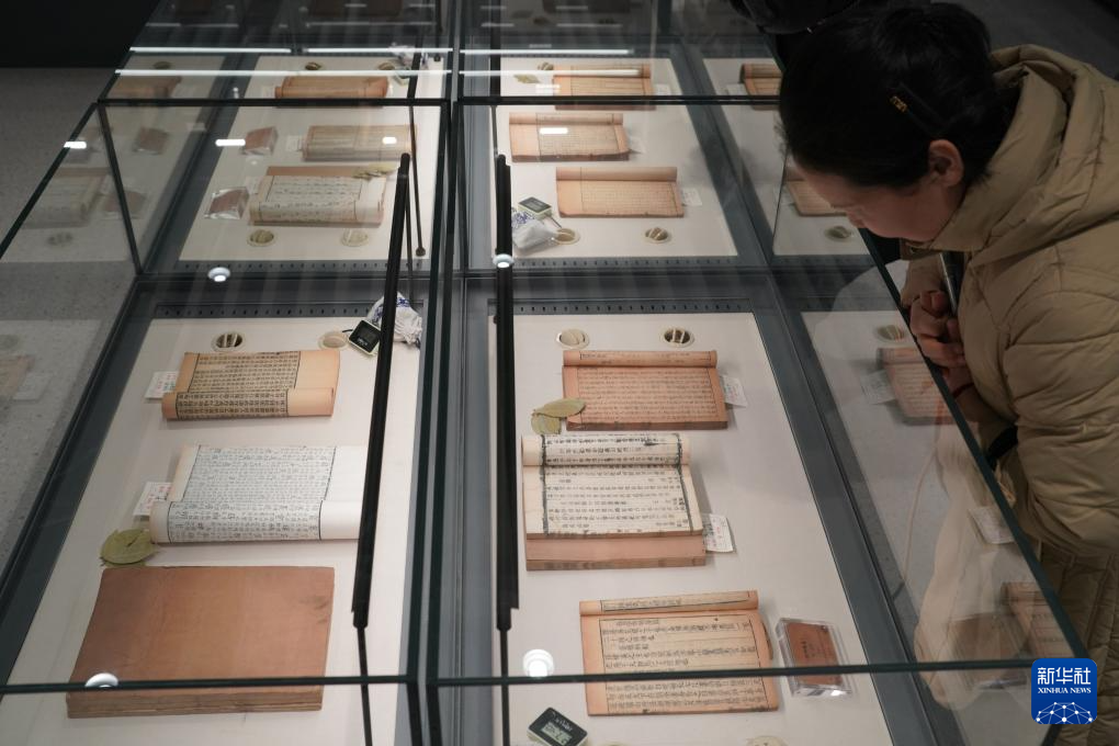 1月13日,参观者在新落成的长安书院内查看古籍。