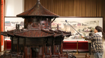 3月16日,在新西兰奥克兰举行的新西兰中国儿童文化日活动上,一名游客与身穿中国少数民族传统服饰的工作人员合影。