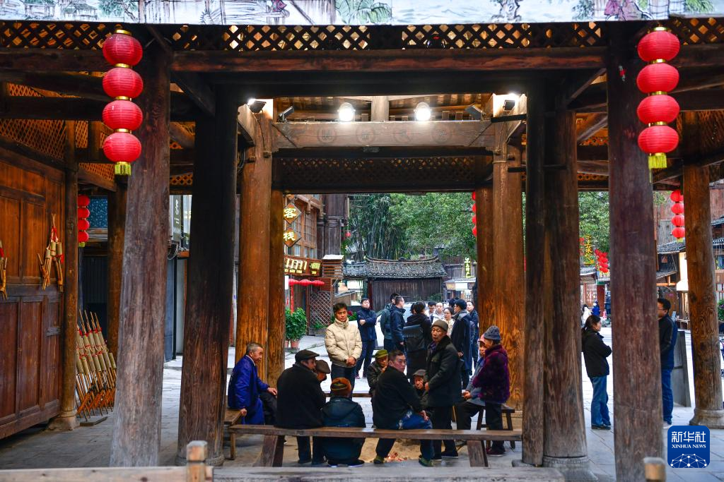 3月18日,游客在贵州省黎平县肇兴侗寨里的侗族文化展示中心拍摄。