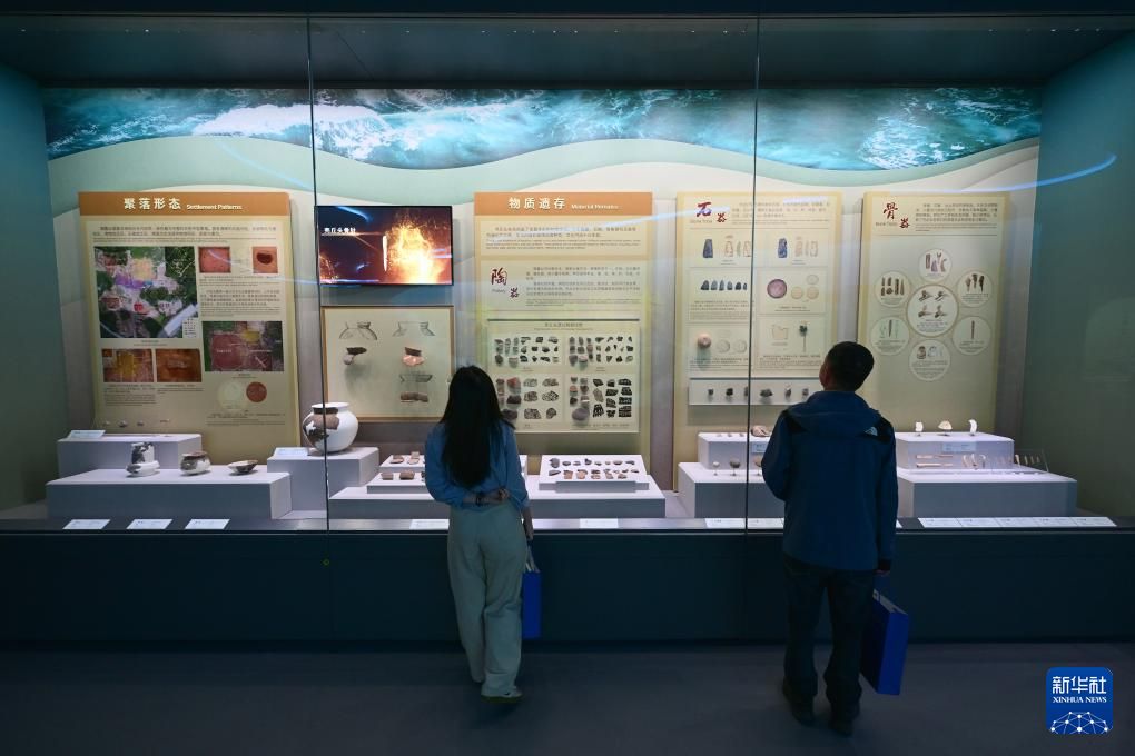 这是中国考古博物馆壳丘头分馆的展品陈列(4月8日摄)。