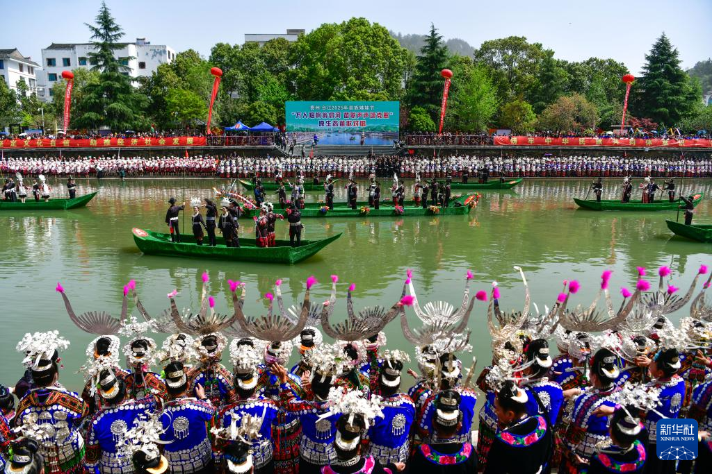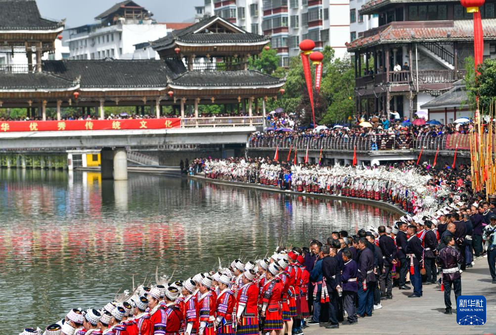 当日,贵州台江2025年苗族姊妹节苗歌对唱活动在台江县翁你河畔举行。来自台江县的万余名苗族群众,身着节日盛装齐聚翁你河畔,以传统对唱的方式,向游客展现苗族飞歌、情歌,欢庆姊妹节。