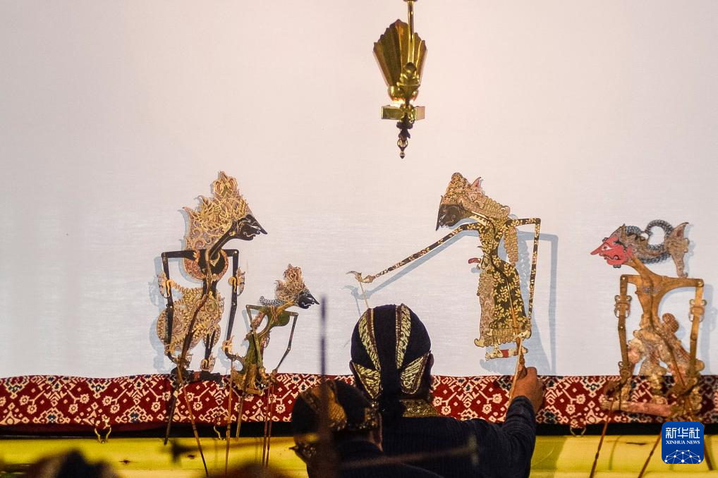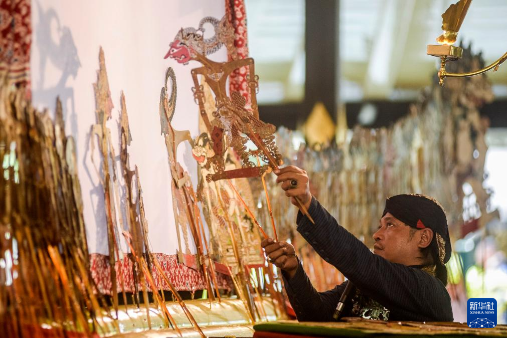 1月9日,在印度尼西亚日惹,皮影师表演哇扬戏。