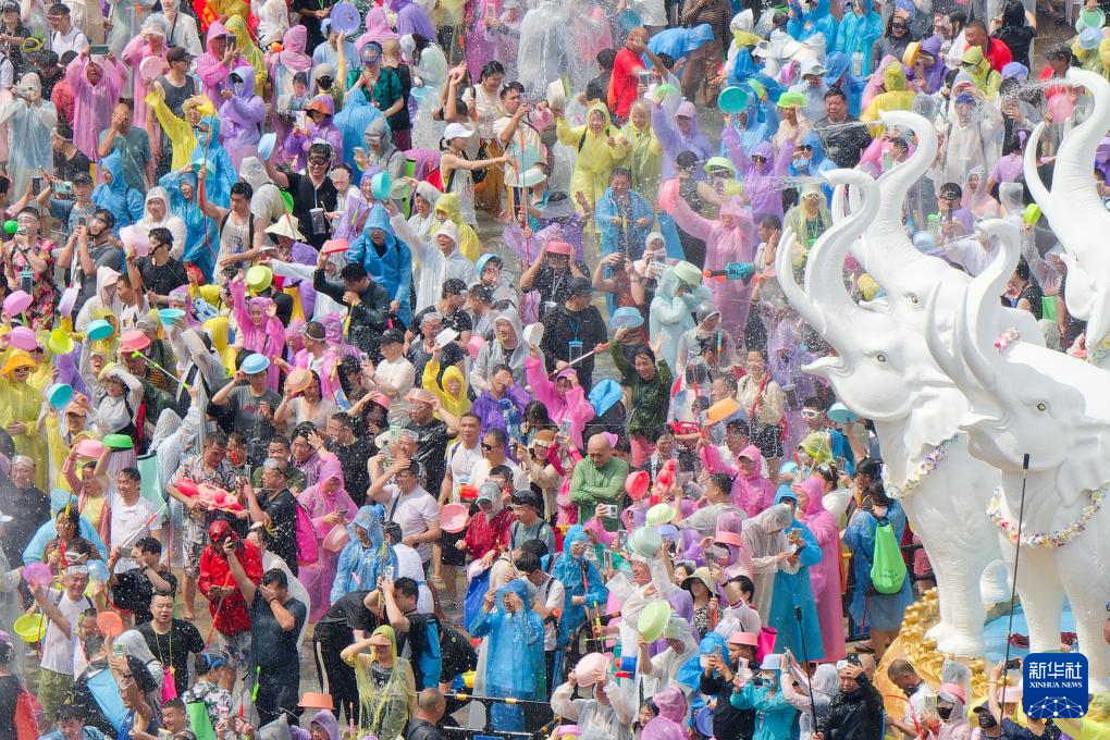 当日,云南多地举行泼水节活动,各族群众和游客用相互泼水的方式互送祝福,庆祝泼水节。