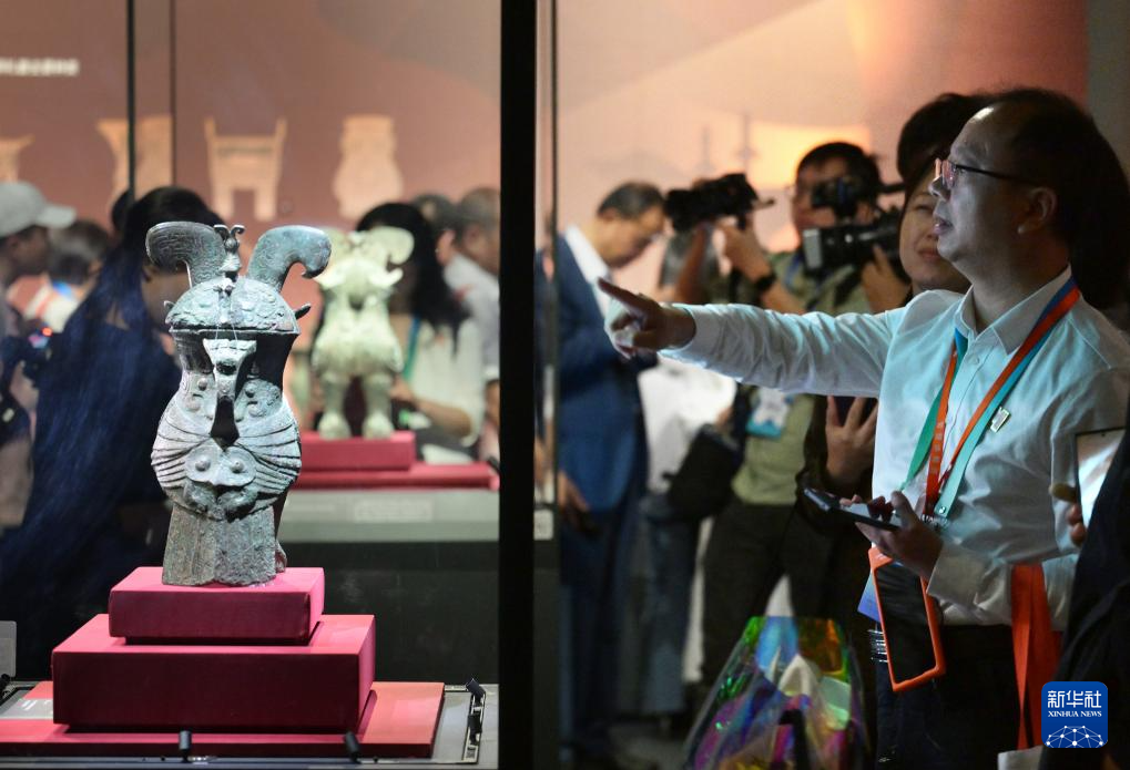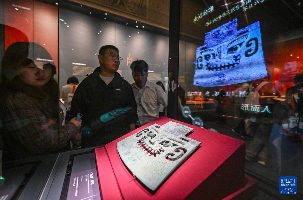 5月18日,参观者在“中华文明起源系列展:看·见殷商”展览中观看展品。