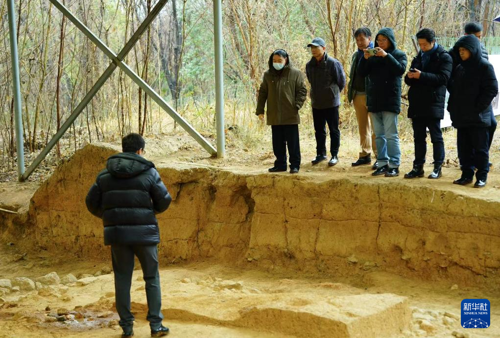 业内专家在盘龙城遗址石砌建筑遗迹现场进行考察论证(2015年1月25日摄)。新华社记者 喻珮 摄