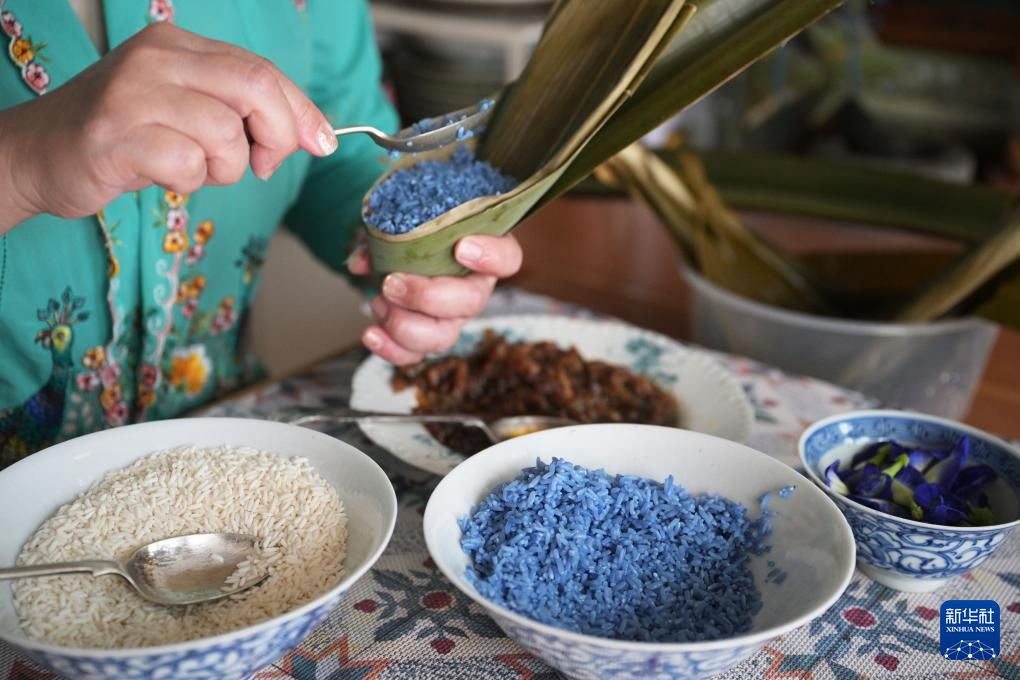 数百年前,早期的中国移民来到马六甲,与当地人通婚,其后代男性被称为峇峇,女性被称为娘惹。中国美食在南洋也焕发出全新光彩,娘惹粽就是其中的代表。蓝色糯米是娘惹粽的一大亮点,要用蝶豆花熬出天然色素来染色。新加坡娘惹博物馆展示的娘惹粽馅料选用炒冬瓜糖丝与香料腌制的剁碎猪肉,并用斑斓叶与竹叶包裹。