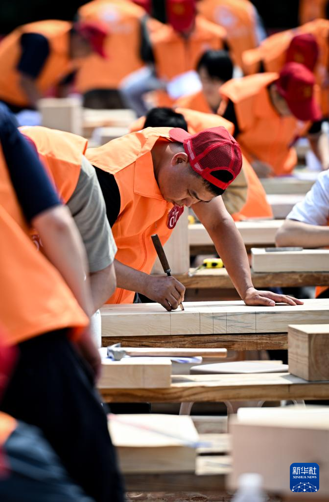 这是5月26日拍摄的木作文物修复师比赛现场。