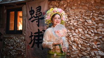 8月21日,在英国伦敦,浙江小百花越剧院的演员表演越剧折子戏《陆游与唐琬·题诗壁》。