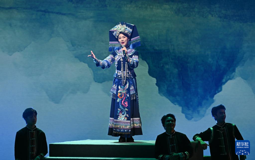 11月4日,在重庆群星剧院,演员演唱歌曲《山歌好比春江水》。