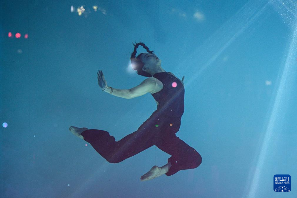 1月14日,舞者在2026中国极限舞蹈表演赛期间进行水下舞蹈表演。