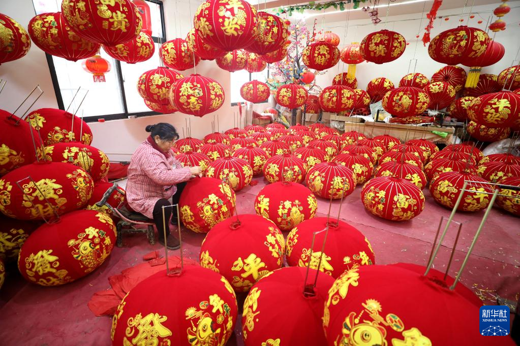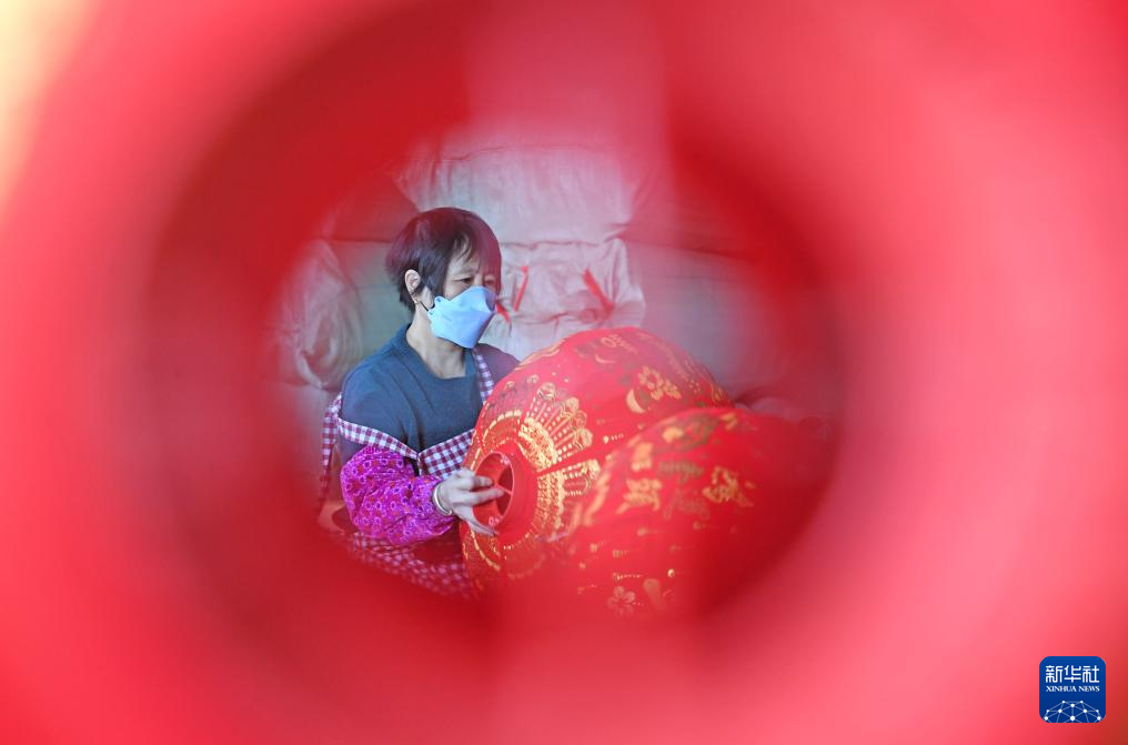 春节临近,大红灯笼迎来产销旺季,工人们忙着赶制各式灯笼,供应各地节日市场。