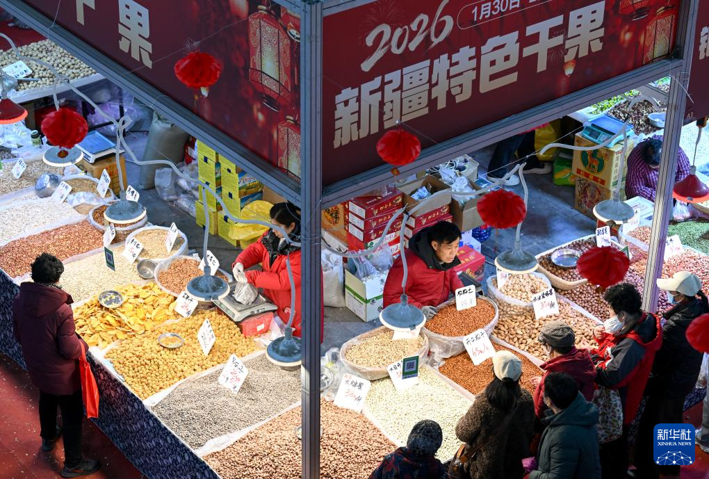 2月5日,在2026银川新春年货博览会现场,市民选购干果特产。