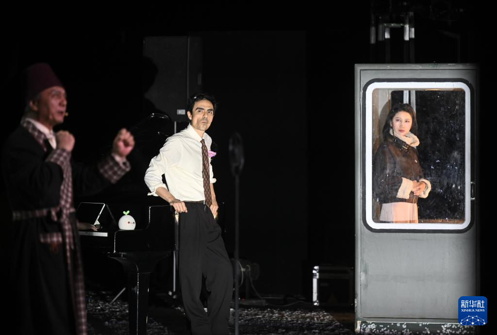 3月27日,演员小六、马克·普拉斯、薛飞(右起)在《小王子》中演出。