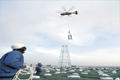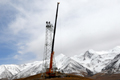 一架帶紅色卡-32型直升機(jī)順利吊起1.5噸鐵塔材料,穩(wěn)穩(wěn)放在由該架直升機(jī)吊裝的2.2噸重的鐵塔底座上 [詳細(xì)]