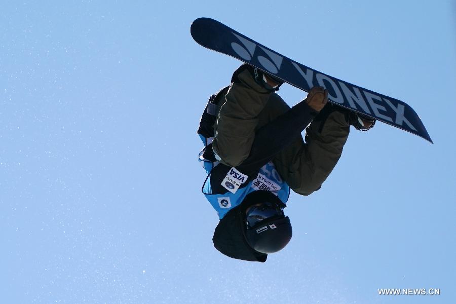 Japan's Totsuka Yuto competes during the men's competition of 2017-2018 FIS Snowboard Halfpipe World Cup held at Genting Resort Secret Garden in Chongli District of Zhangjiakou City, north China's Hebei Province, Dec. 21, 2017. Totsuka Yuto won the third place of the event with 90.50 points.(Xinhua/Ju Huanzong)