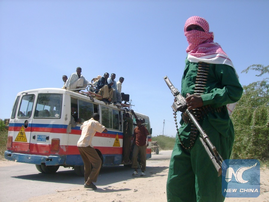 File photo shows an insurgent stands guard as the Al-Shabaab launches a mine-sweeping operation in the Somali capital of Mogadishu on Jan. 19, 2009. (Xinhua/Abdurrahman Warsameh)