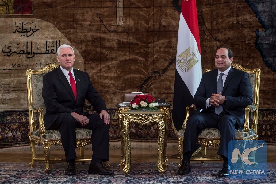 Egyptian President Abdel Fattah al-Sisi meets with with U.S. Vice President Mike Pence at the Presidential Palace in Cairo, Egypt January 20, 2018. (Reuters Photo)