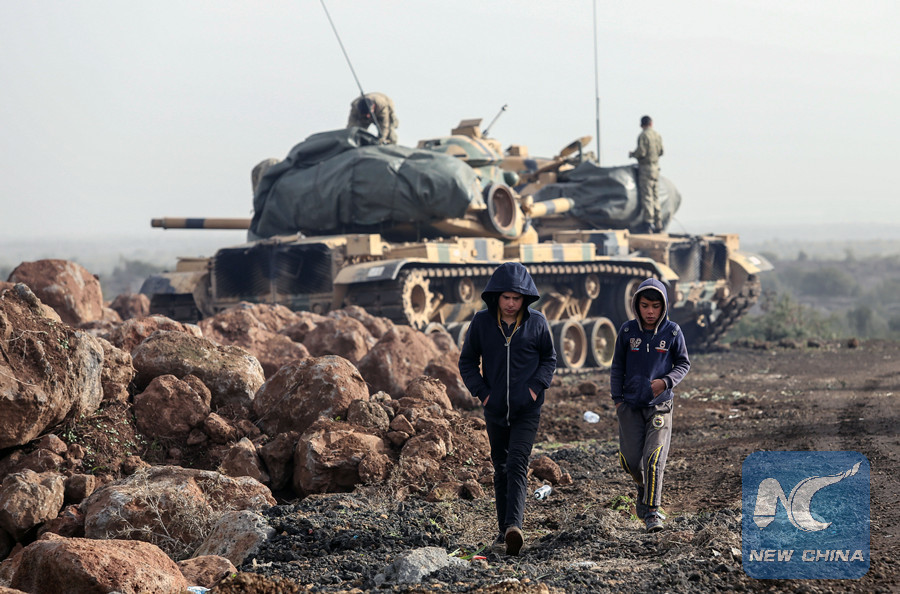 ISTANBUL, Jan. 26 (Xinhua) -- As the Turkish military advances in Syria's Afrin against Kurdish militia forces, the U.S. call for a limitation of the operation's scope reveals rising tension in ties between the two NATO allies.