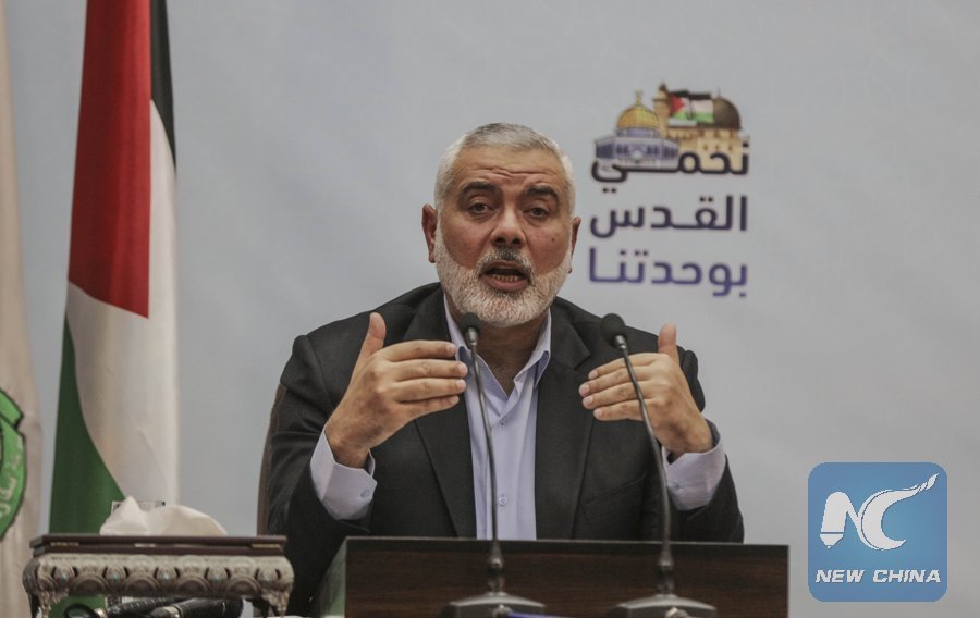 Hamas leader Ismail Haniyeh delivers a speech in Gaza City, on Jan. 23, 2018. (Xinhua/Wissam Nassar)