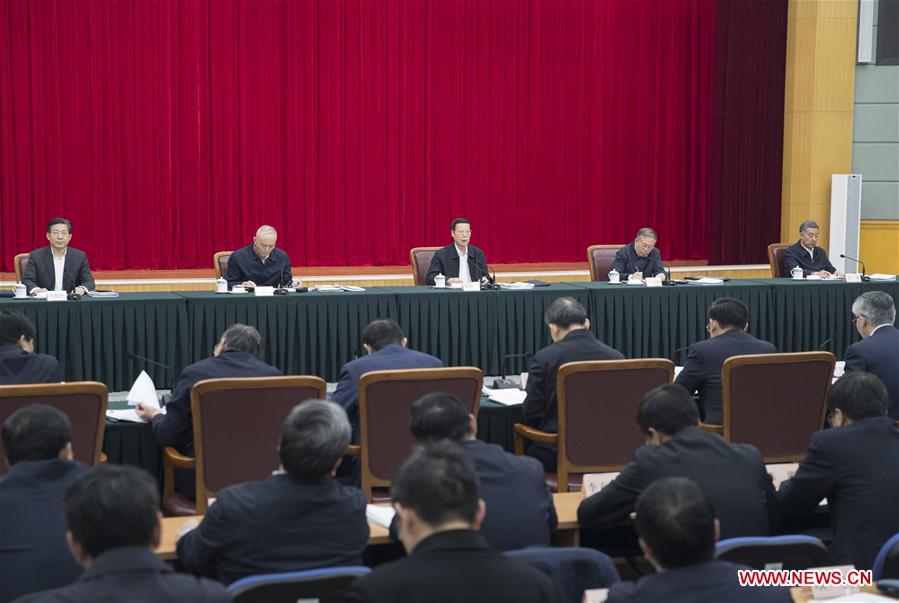 Chinese Vice Premier Zhang Gaoli (C) presides over a meeting on advancing the coordinated development of the Beijing-Tianjin-Hebei region, in Beijing, capital of China, Feb. 25, 2018. (Xinhua/Wang Ye)