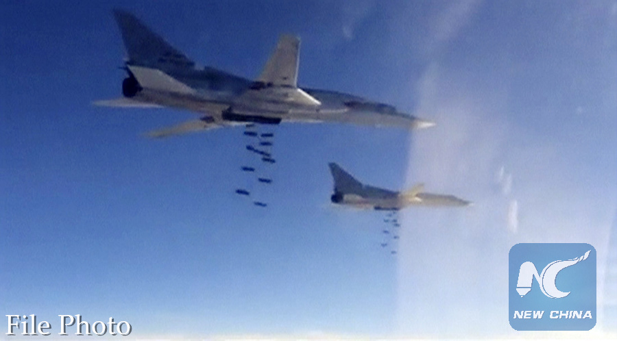 Russian Tupolev Tu-22 long-range strategic bombers conduct an air strike at an unknown location in Syria, in this still image taken from video footage released by Russia's Defence Ministry on November 18, 2015.