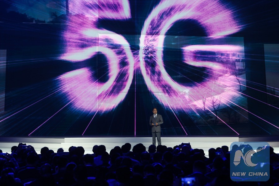 File photo taken on Dec. 3, 2017 shows Xu Zhijun, Huawei's rotating CEO, introduces achievements of 5G technology during the release ceremony for world leading Internet scientific and technological achievements in Wuzhen, east China's Zhejiang Province. (Xinhua/Zheng Huansong)