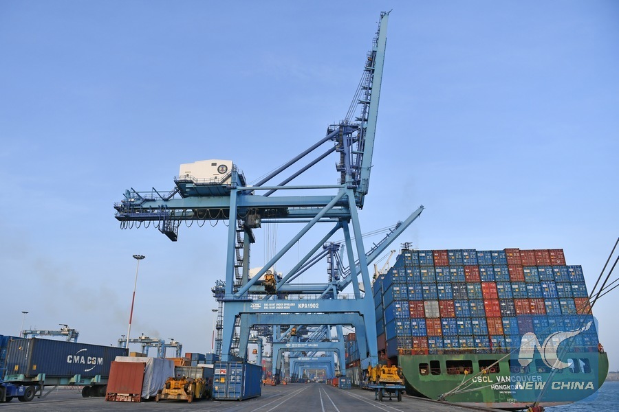 Photo taken on Jan. 9, 2017 shows the 19th berth of East Africa's largest port Mombasa Port in Mombasa, Kenya. (Xinhua/Sun Ruibo)