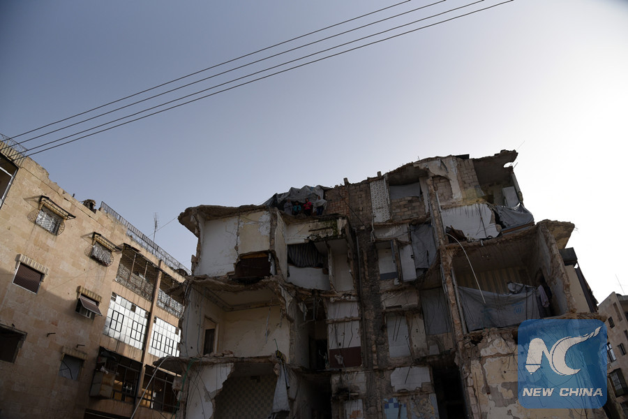 Aleppo, Syria, May 7 (Xinhua) -- Amina's only dream is to be able to read and write in a safe house, as her worst nightmare is falling off her half destroyed balcony, which she referred to as the "home of destruction" in Syria's Aleppo city.