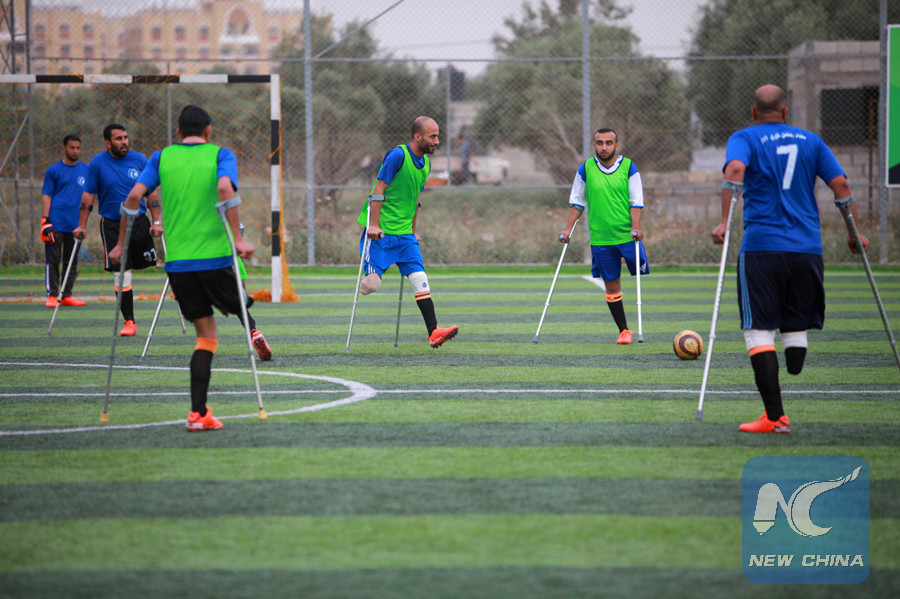 GAZA, May 11 (Xinhua) -- A football team of male amputees was recently formed in the Palestinian Gaza Strip, the first of its kind in the Israeli-blockaded coastal enclave.