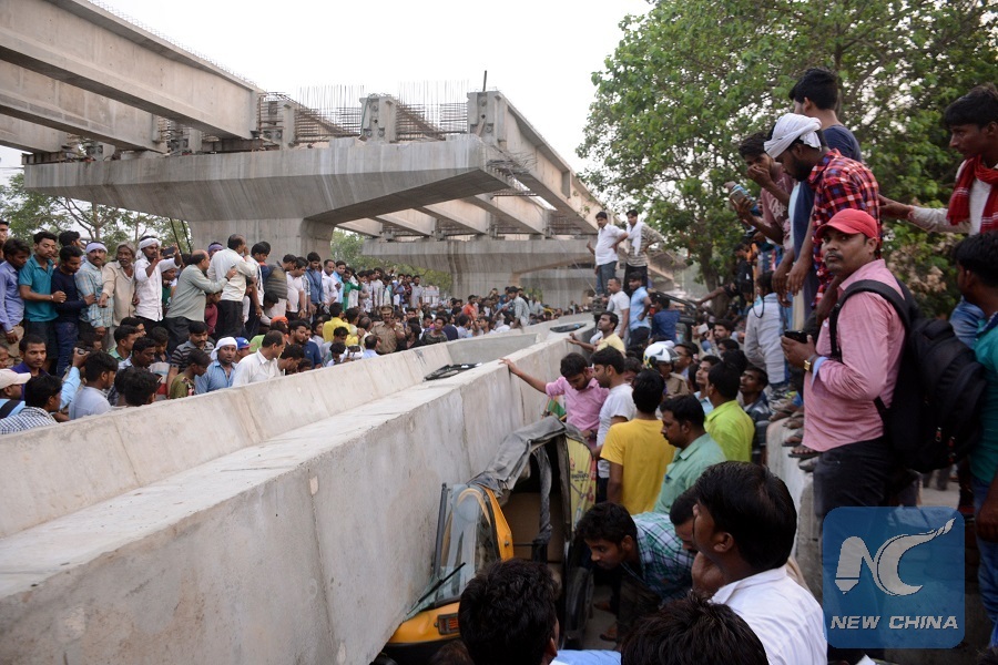 NEW DELHI, May 16 (Xinhua) -- At least 18 people have been killed and many others feared trapped after an under-construction flyover collapsed on Tuesday in northern Indian state of Uttar Pradesh, officials said.