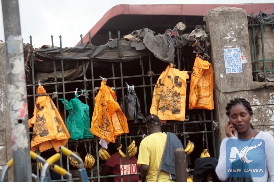 Photo taken on Aug. 24, 2017 shows plastic bag for sale in Nairobi, capital of Kenya. Kenya announced a ban on the use of plastic bags in March, giving manufacturers a six-month grace period as the order takes effect on Aug. 28. (Xinhua/John Okoyo)