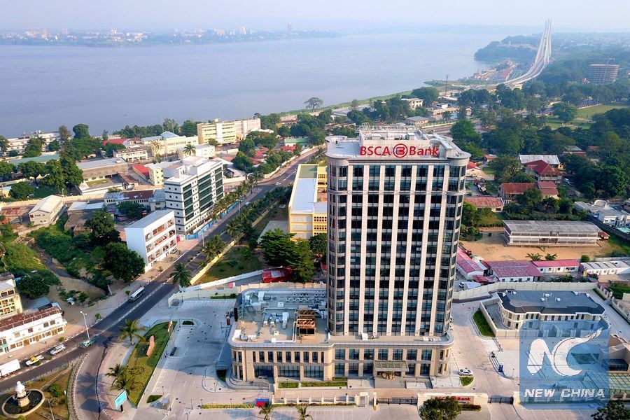 Aerial photo taken on June 9, 2018 shows the new office building of the Sino-Congolese Bank for Africa (BSCA) in Brazzaville, capital of the Republic of Congo. (Xinhua/Wang Teng)