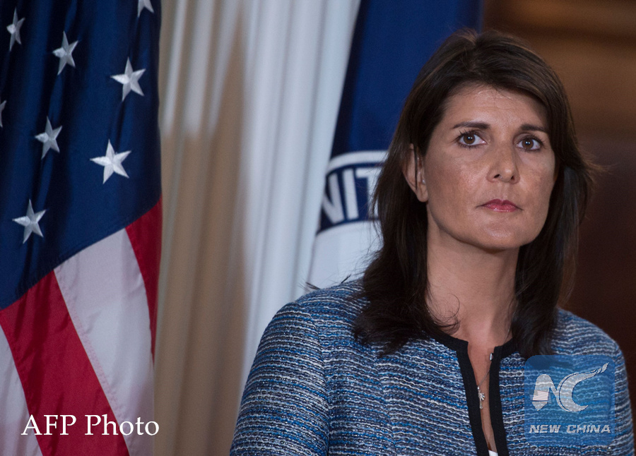 US Ambassador to the United Nation Nikki Haley speaks at the US Department of State in Washington DC on June 19, 2018. (AFP PHOTO)