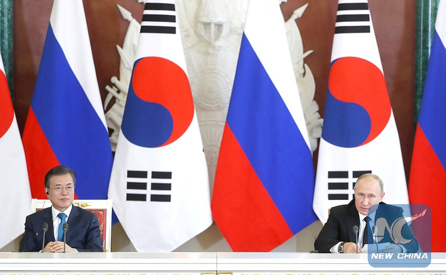 MOSCOW, June 22 (Xinhua) -- Russian President Vladimir Putin and his South Korean counterpart Moon Jae-in have agreed during talks here to develop bilateral cooperation in a range of sectors, the Kremlin said Friday.