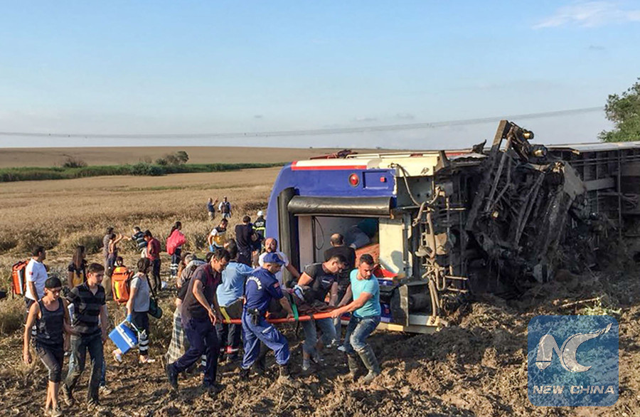 ISTANBUL, July 8 (Xinhua) -- At least 10 people were killed and 73 others were injured when a commuter train derailed on Sunday in Turkey's northwestern Tekirdag province, local media reported.