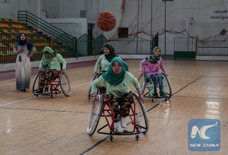 GAZA, July 27 (Xinhua) -- Sitting on her wheelchair, Suha Meqat from Gaza City enjoys playing basketball with her teammates in Gaza's first wheelchair basketball team for women.