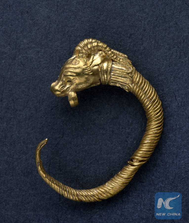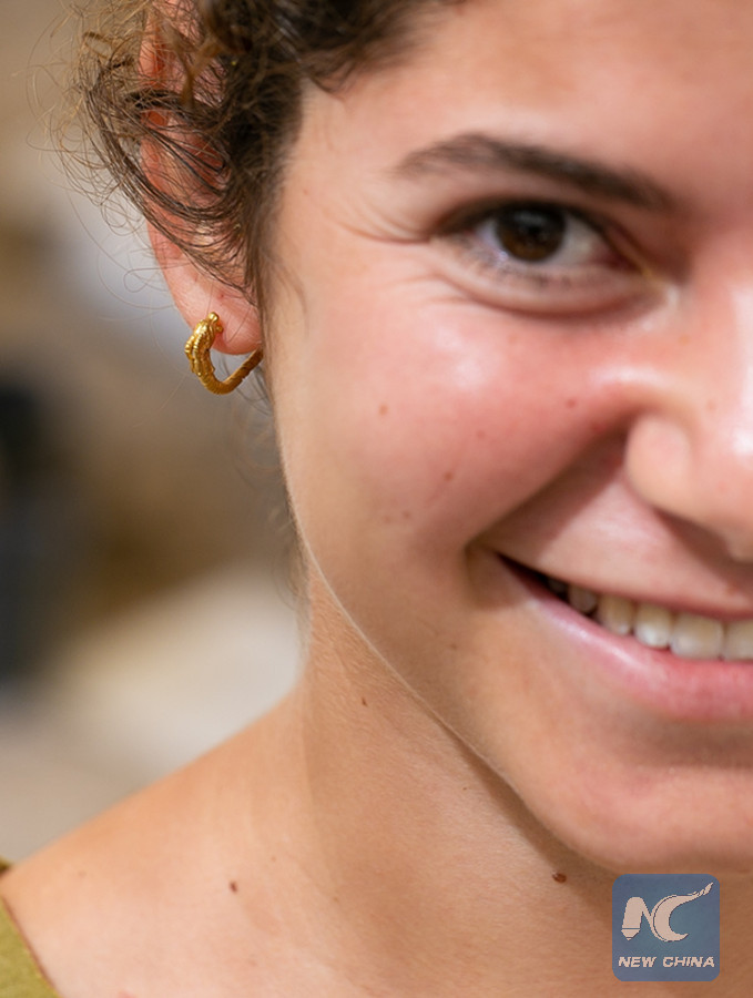 JERUSALEM, Aug. 8 (Xinhua) -- A Hellenistic era 2,000-year-old golden earring, featuring ornamentation of a horned animal, was discovered in Jerusalem, Israel Antiquities Authority (IAA) announced Wednesday.
