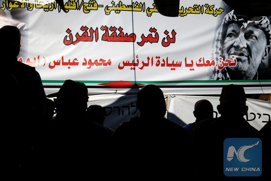 RAMALLAH, Aug. 15 (Xinhua) -- Palestinian President Mahmoud Abbas reaffirmed on Wednesday that the Palestinians reject the new peace plan proposed by the United States, known as "Deal of the Century."