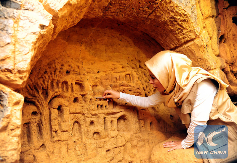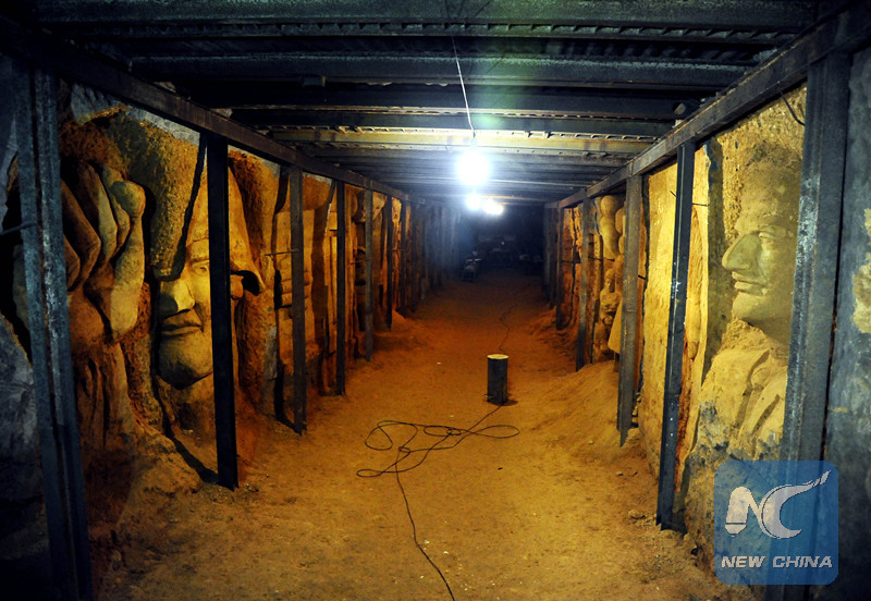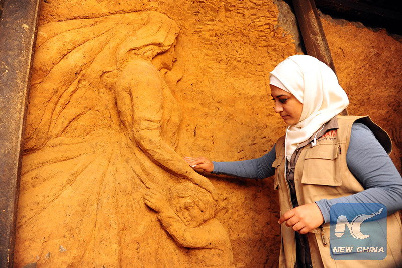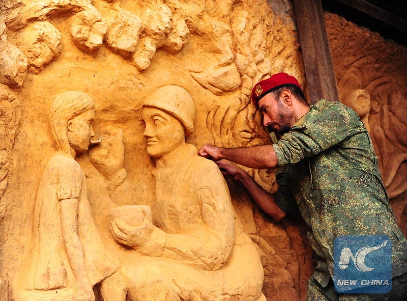 DAMASCUS, Aug. 19 (Xinhua) -- In an underground tunnel that had been used by rebels to transfer weapons east of the capital Damascus, 18 Syrian artists carved the walls and shaped them into lively sculptures.