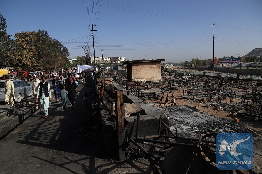 Photo taken on Aug. 19, 2018 shows a damaged Bazar after Taliban attack in Ghazni city, capital of Ghazni province, Afghanistan. (Xinhua/Sayed Mominzadah)